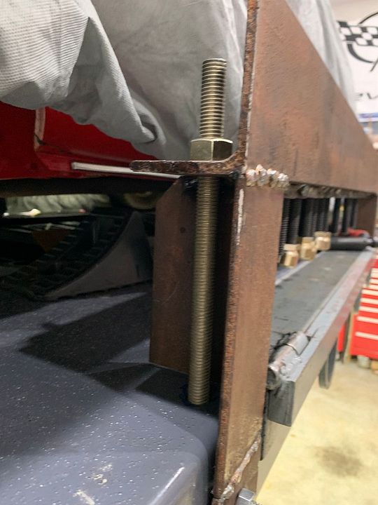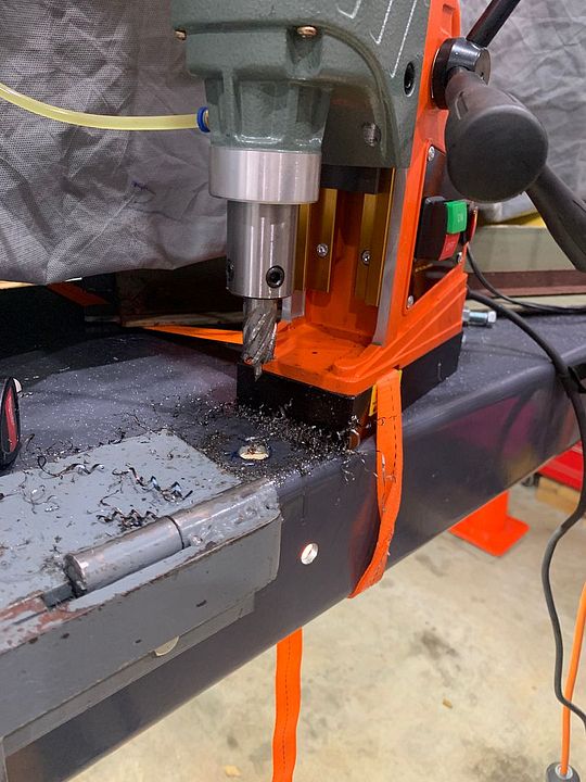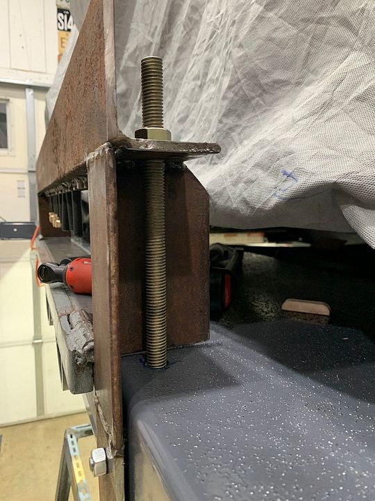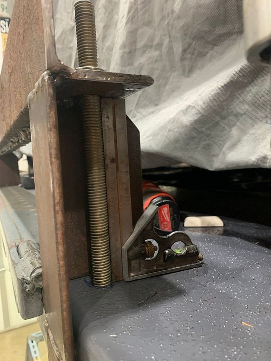 Because of a previous mounting application I had to cut new openings into the top angle iron so it could go over the hinges, previous application had the tall leg of e clamping angle iron at the back